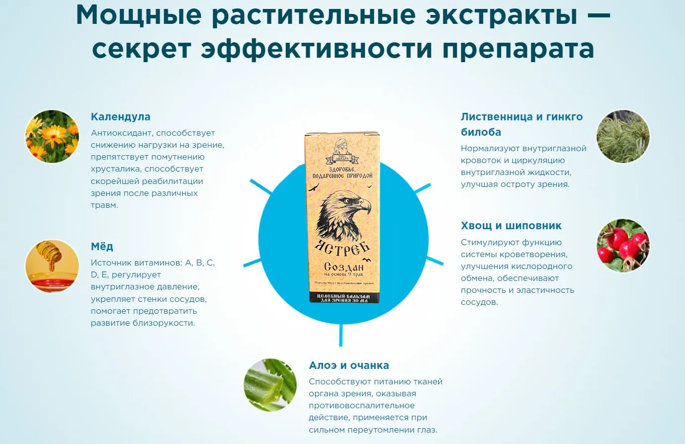 Эффект препарата Ястреб проявляется в многогранной поддержке здоровья глаз и улучшении зрения благодаря его уникальному сочетанию натуральных ингредиентов