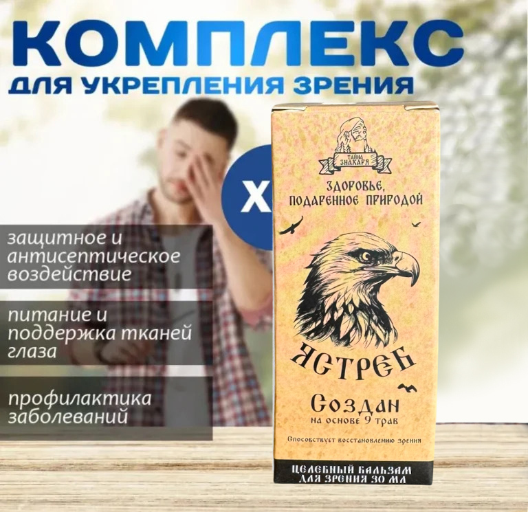 Ястреб — это природный витаминный комплекс для полноценной поддержки здоровья глаз и улучшения зрения. Специально созданный состав помогает снизить усталость, улучшить кровоснабжение и предотвратить возрастные ухудшения зрения.
